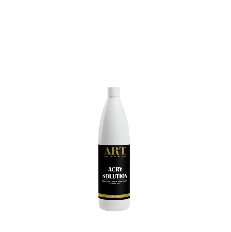 Acry Solution è uno speciale liquido con il quale va imbevuto l’apposito pennello per facilitare la modellazione dell' AcryGel senza limiti temporali e senza colature fino alla polimerizzazione in lampada UV/LED